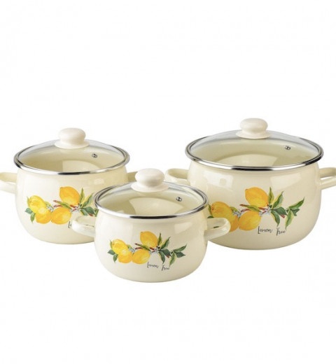 Все брендыНабор кастрюль эмалированных Зелень фреш, Лимон №6928 Idilia ТМ Epos