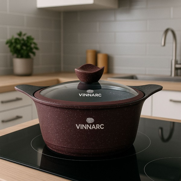 Всі брендиКаструля кругла 4.3 л зі скляною кришкою Grand VINNARC VB-A0324NS бордо