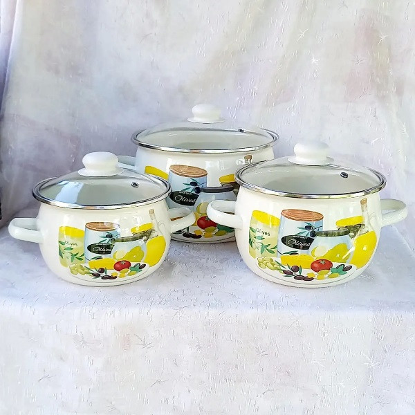 Набір каструль емальованих Віола, Анабель №6926 Idilia зі скляними кришками ТМ Epos